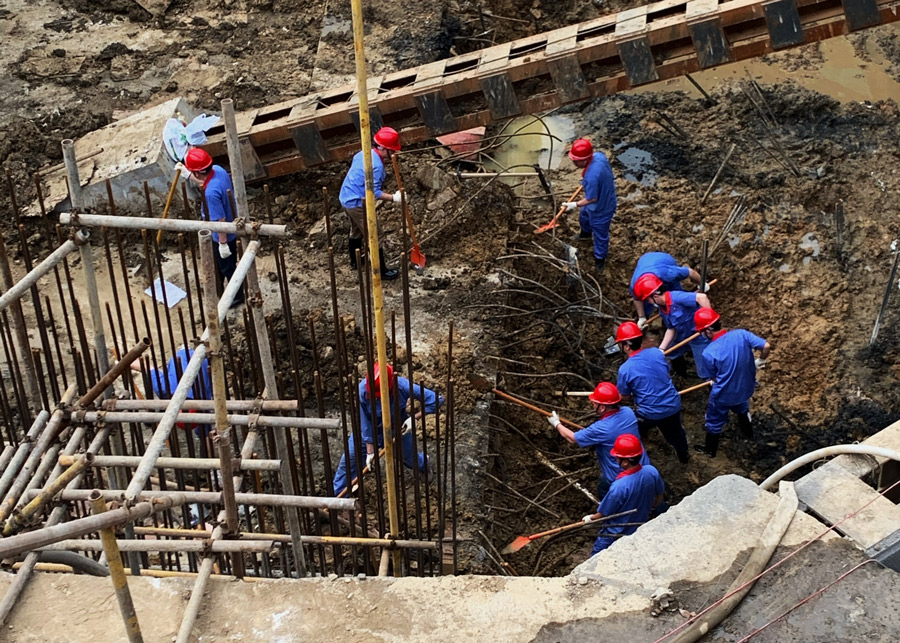 5月27日,集团公司党委书记、董事长吴福胜到项目现场调研,详细了解项目进展情况后指出:目前工期紧、任务重、施工难度大,建设单位和施工单位不分彼此,群策群力,全力以赴推进项目建设。德瑞格公司积极响应号召,立即组织职工支援施工单位。5月28日开始,每日组织60多人进入施工现场,深入10米深的基坑内清理淤泥;进入主厂房一层、二层、顶楼和动力站,传运脚手架钢管、木料和清运建筑垃圾,为施工创造有利条件。10天来,党员骨干带头,不分上班下班,主动放弃周末休息时间,白天顶着烈日挥汗如雨,晚上挑灯夜战不畏辛苦,提出“以一天当两天用”的口号,全力配合施工单位把前期耽误的工期抢夺回来。