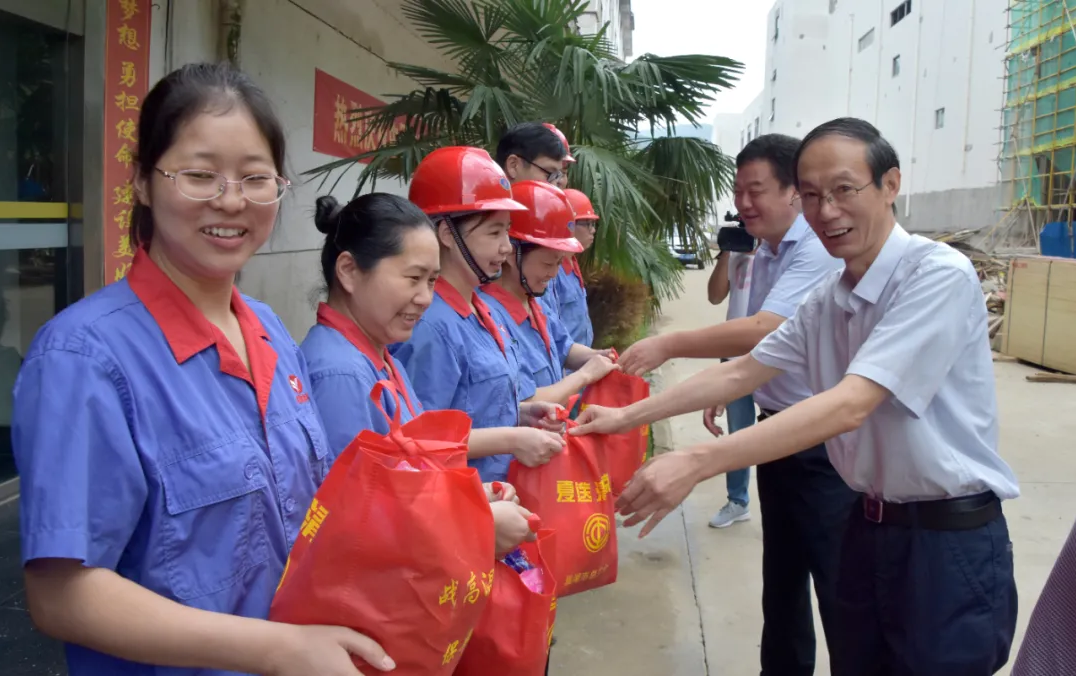 ? “我代表巢湖市总工会来看望大家,你们不怕酷暑,坚守岗位,一定要多注意身体......”在大维分厂,王兴涛亲切地与职工交谈,并为他们送上清凉包。